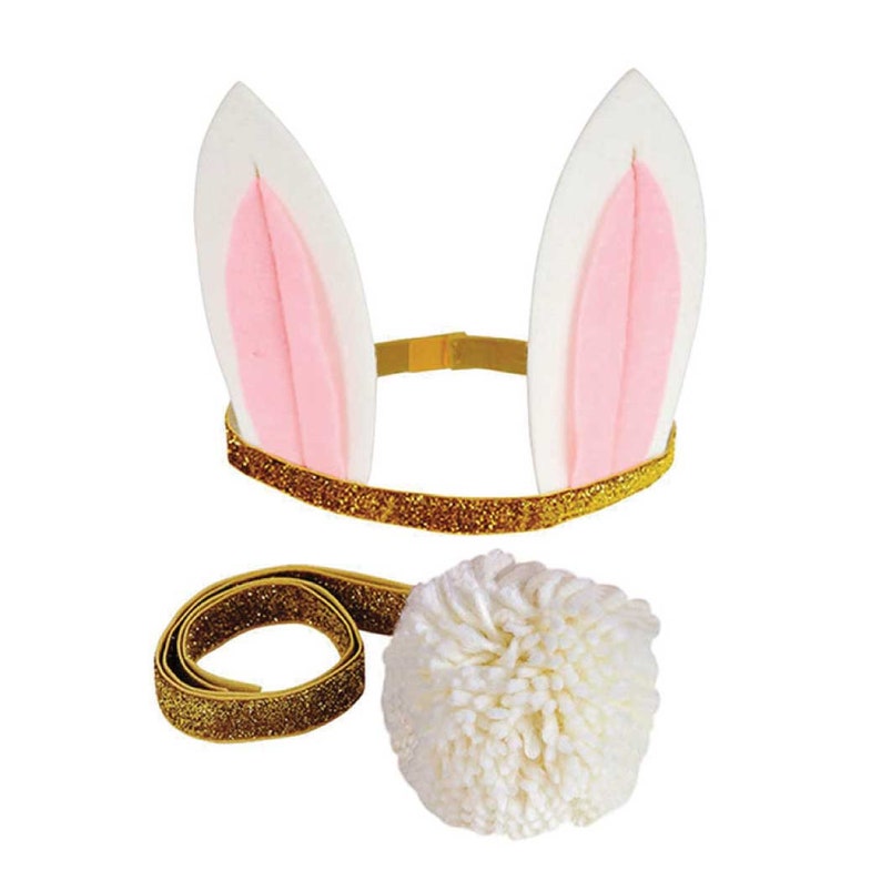 Inspire dress-up magic with these easy-to-wear bunny ears and pom pom tail. Non-scratchy and ready for play with top quality materials and construction. This dress-up-set may inspire a few bunny hops and is a great alternative to an Easter bonnet! From Meri Meri.