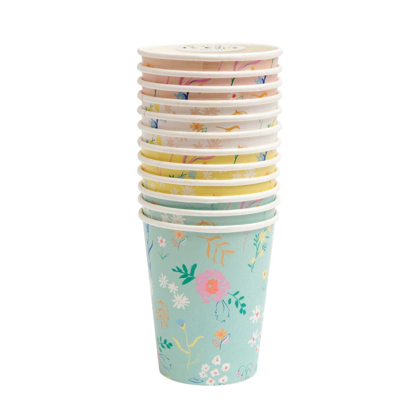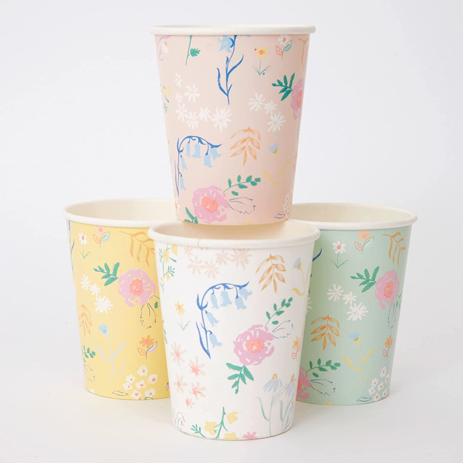 These beautiful wildflower paper cups feature a botanical pattern perfect for baby showers, birthdays, and cottage themes of all kinds. The assortment of 12 luxury cups includes 4 pretty pastels. Luxury party goods by Meri Meri.