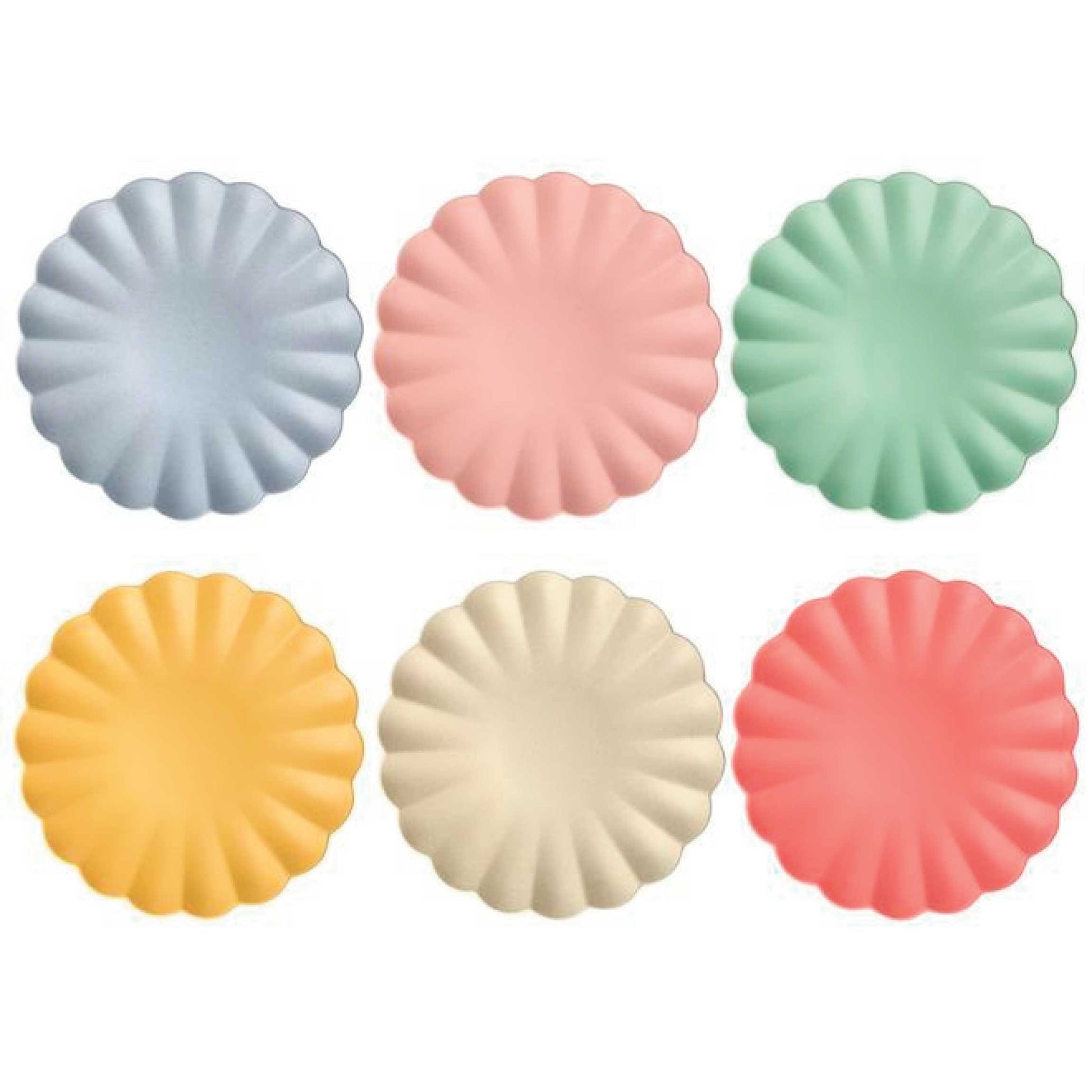 Cute, sturdy and reusable, Meri Meri’s large pastel plates are perfect for special celebrations and family meals too. Lovely color mix and festive scalloped shape, along with great texture and balance that kids love. Lightweight and dishwasher safe. Made with bamboo, a naturally renewable resource.