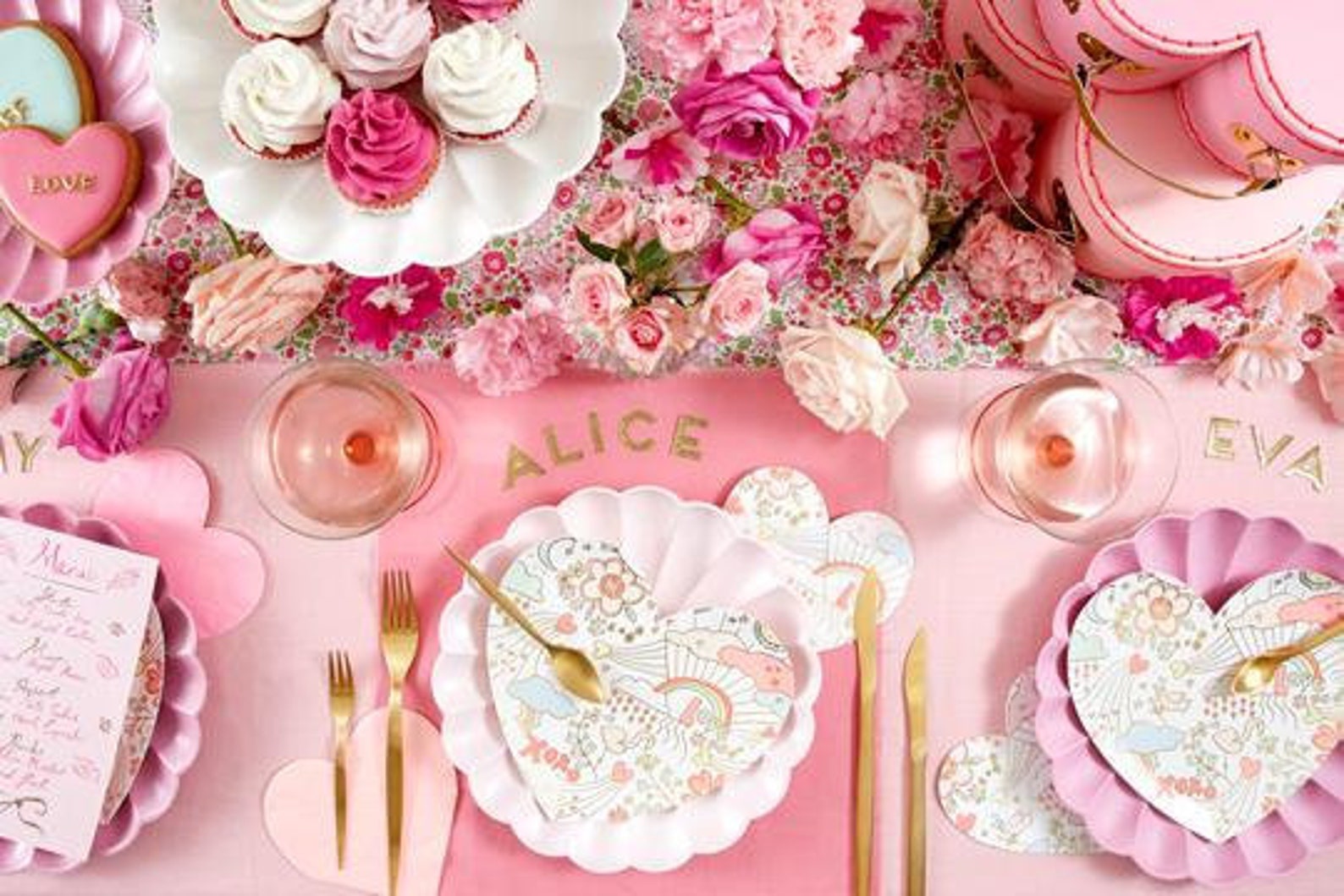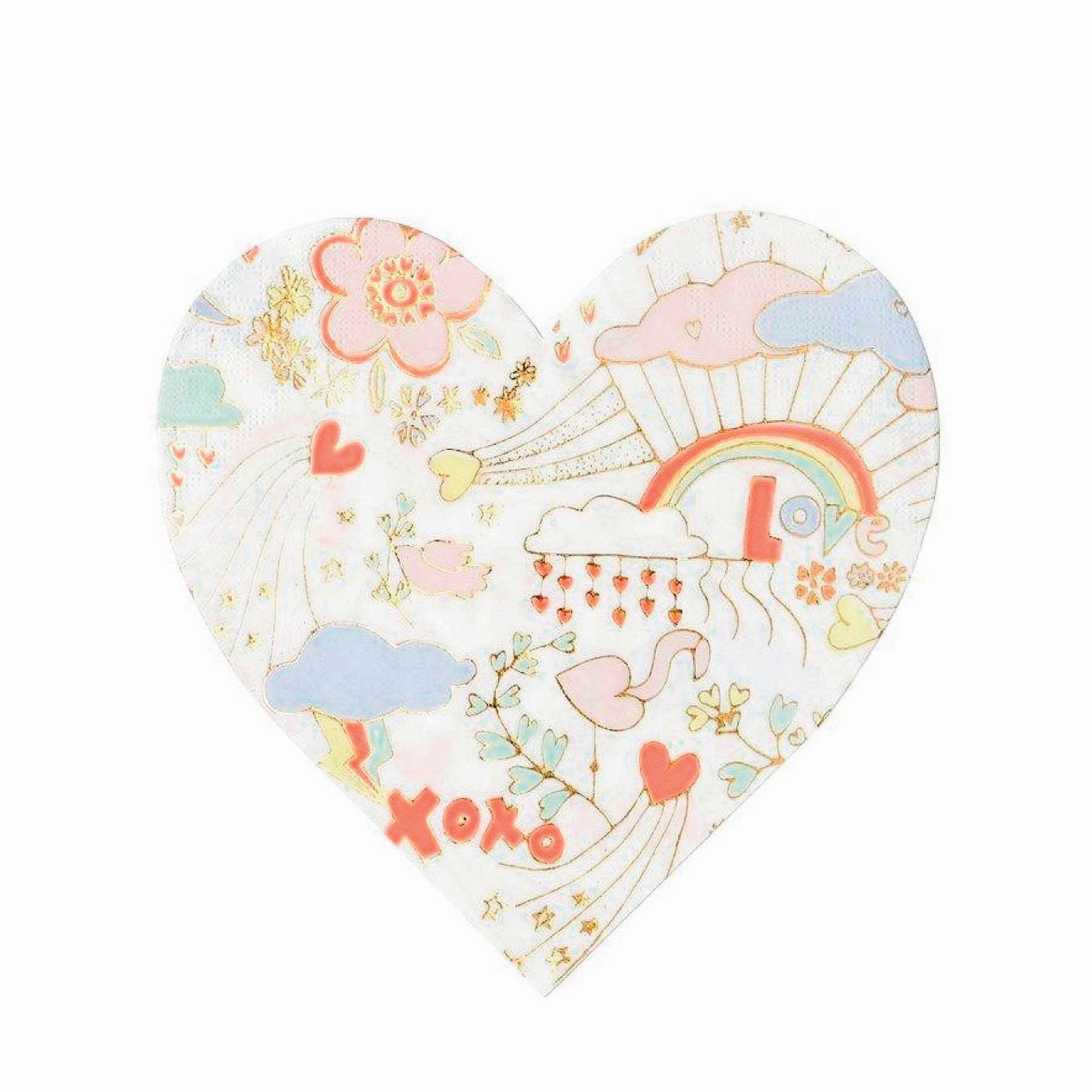 These heart-shaped napkins with bright and friendly illustrations will add a touch of whimsy to a get-together for girlfriends or family, a Valentine’s party, or February lunchbox. Made from high-quality paper with luxurious embossed texture, these colorful heart-shaped napkins are the perfect way to spell L-O-V-E. By boutique party designer Meri Meri.